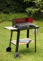 Mobilność grilla gwarantują dwa koła. Dzięki nim przetransportujesz lub ustawisz urządzenie w dowolnym miejscu w ogrodzie lub na tarasie. Dodatkowo posiada praktyczną rączkę wykończoną drewnem. Ten grill węglowy wykonano z emaliowanej blachy stalowej, dzięki czemu jest lżejszy w porównaniu z grillami gazowymi.