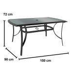 Stół: 72 x 90 x 150 cm (wys. x szer. x głęb.)