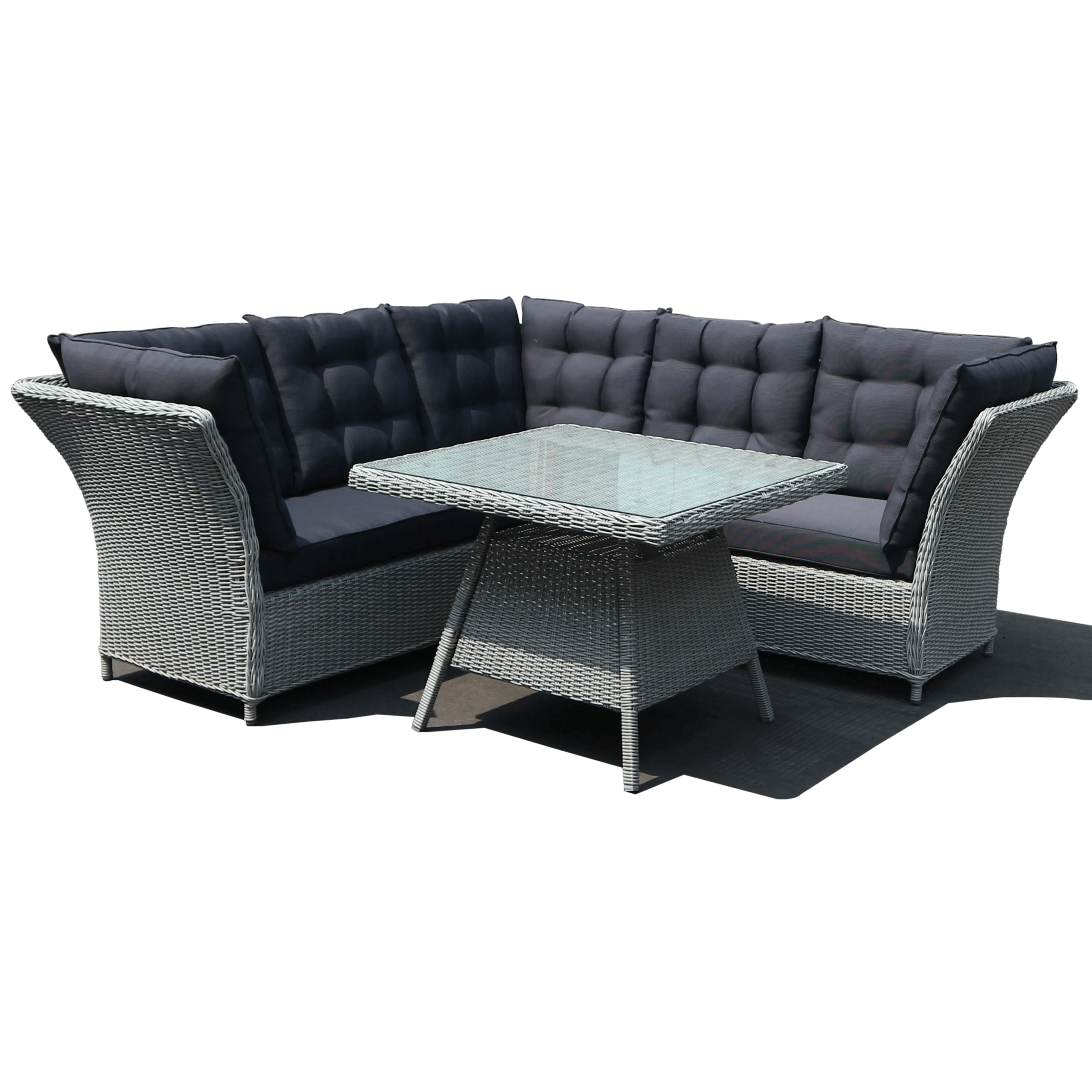 Meble zachwycają swoim eleganckim wyglądem. Duże, miękkie, pikowane poduszki siedzisk i oparcia dają przytulny efekt, zachęcając do wypoczynku. Kształt mebli nawiązuje do stylu rustykalnego, który doskonale sprawdza się w ogrodowej przestrzeni. Wykończenie z technorattanu sprawia, że meble prezentują się nie tylko gustownie, ale i ponadczasowo a dzięki stonowanej kolorystyce pasują do elewacji i dodatków w każdym kolorze.