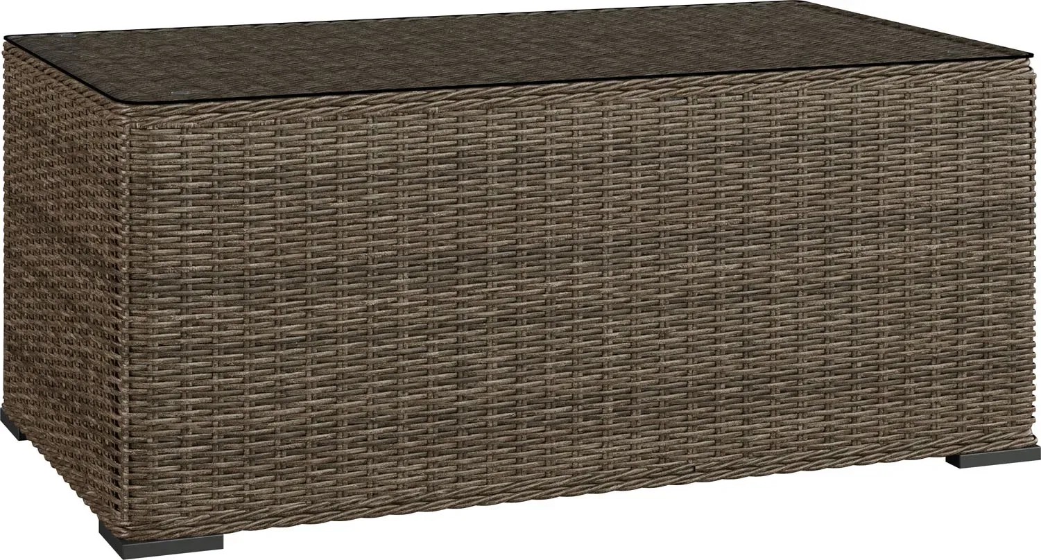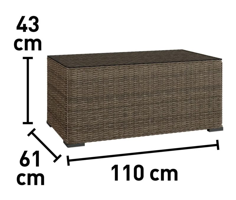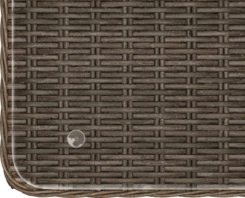 Rama mebli wykonana została z malowanej proszkowo stali, co gwarantuje trwałość i odporność na korozję. Siedzisko i oparcie mebli wykonano z półokrągłej wikliny polietylenowej, która nadaje całości klasyczny, dekoracyjny efekt. Brązowy kolor wikliny idealnie współgra z naturalnymi tonami ogrodowych aranżacji. Stół w zestawie posiada przezroczysty blat wykonany z hartowanego szkła, który jest odporny na zarysowania i łatwy w utrzymaniu czystości.