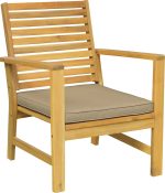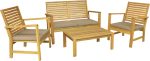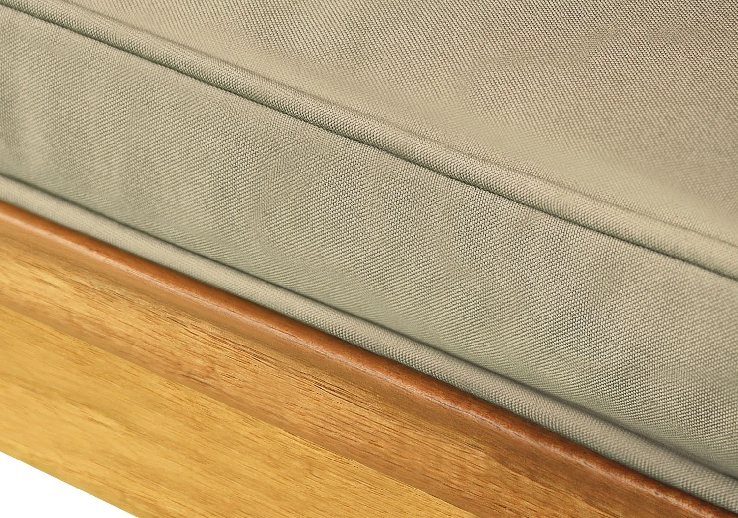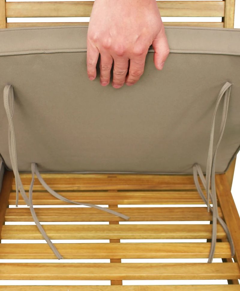 Wykonane z drewna meble to ponadczasowe rozwiązanie, które zawsze wygląda elegancko. Materiał ten doskonale wpisuje się w ogrodową przestrzeń. Poduszki siedzisk w zielonym kolorze harmonijnie korespondują z naturalną roślinnością. Meble prezentują się jednocześnie elegancko i nowocześnie. Będą pięknie wyglądać zarówno na tarasie, w ogrodzie czy w altance.