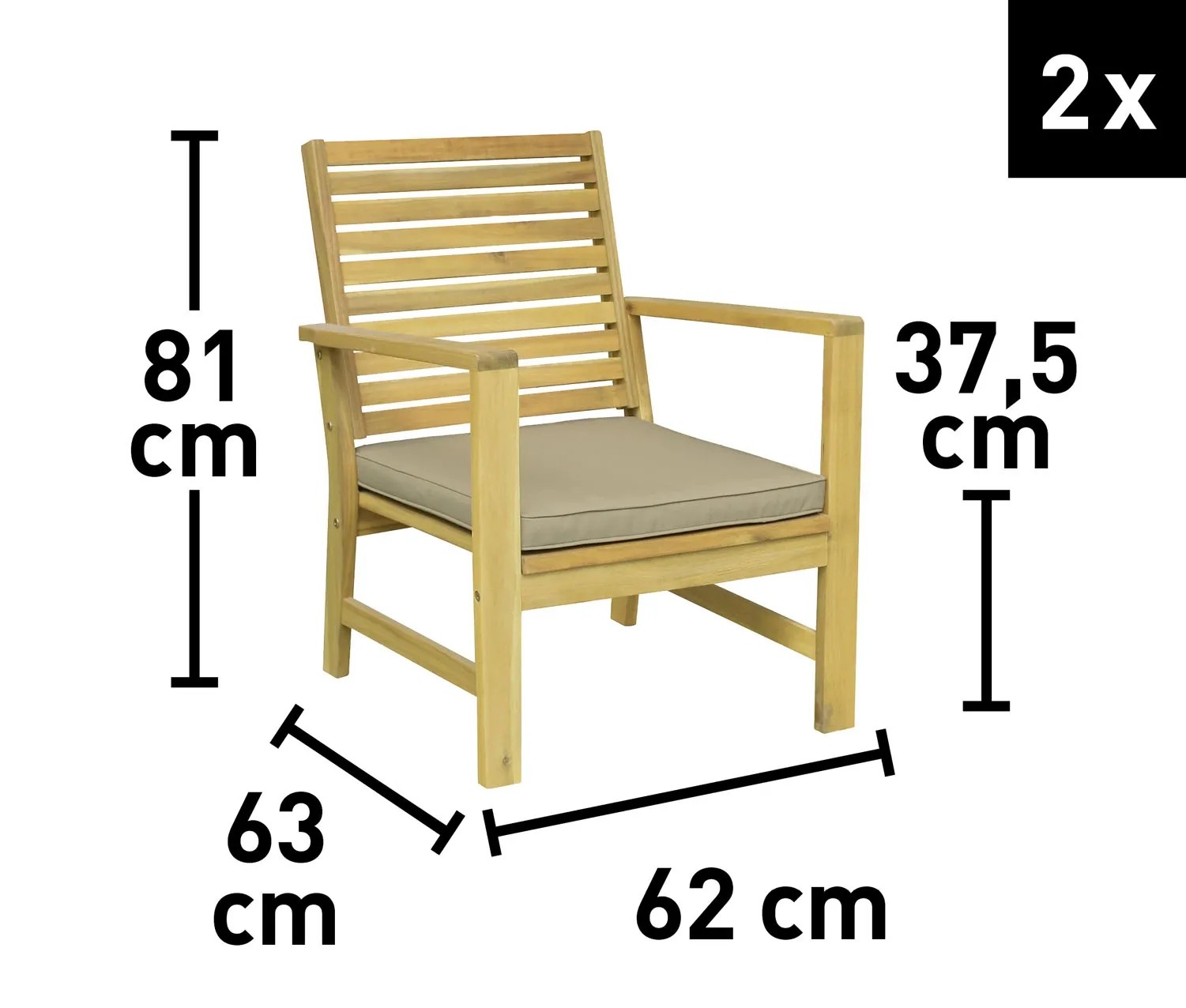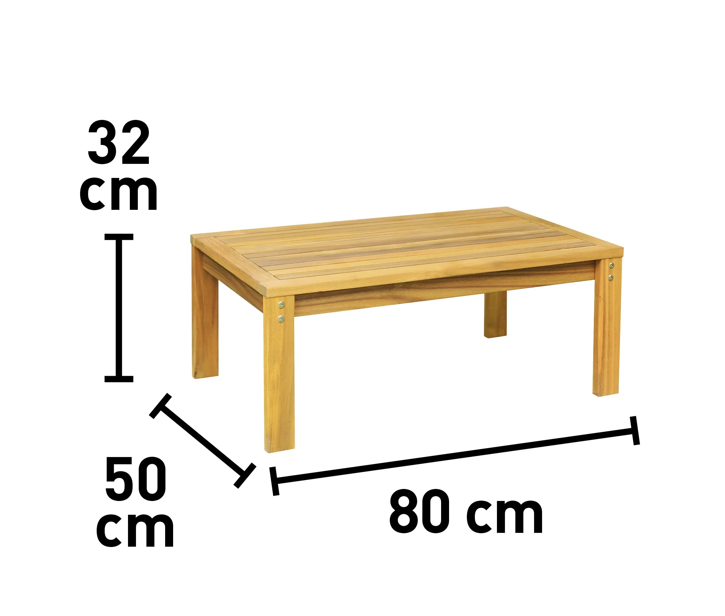 Meble wykonane są z drewna akacjowego. Jest ono twarde i odporne na zarysowania.