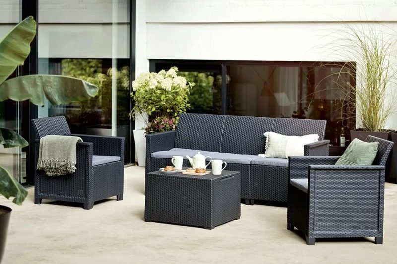 Komplet mebli ogrodowych Elodie firmy Keter to propozycja dla wszystkich, którzy lubią spędzać czas na świeżym powietrzu w towarzystwie przyjaciół i rodziny. Polecany zwłaszcza osobom, które cenią komfort połączony z praktycznością i elegancją.