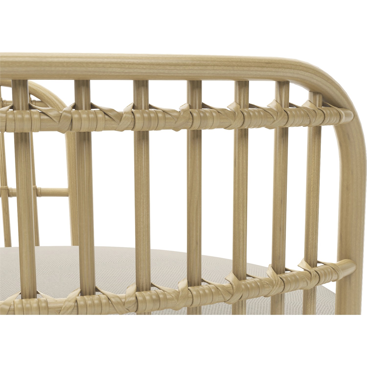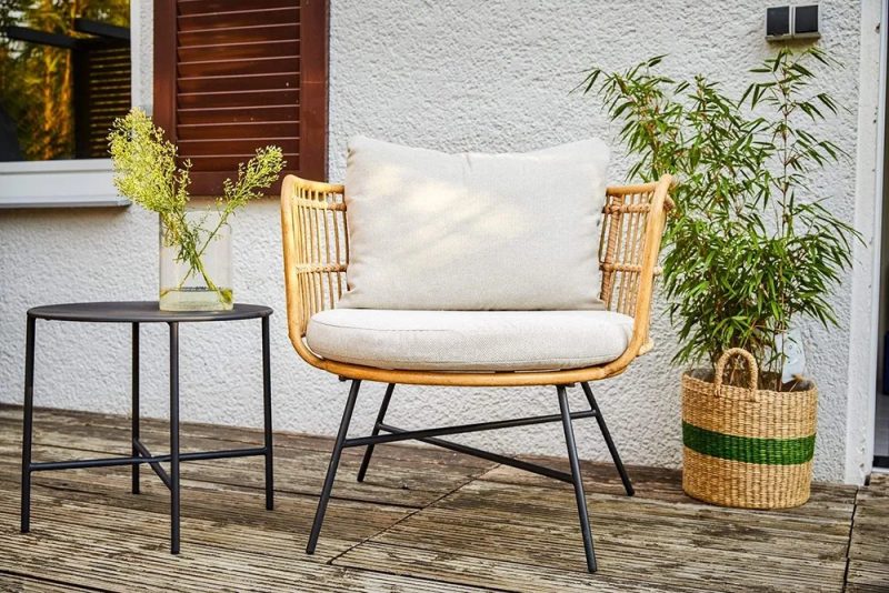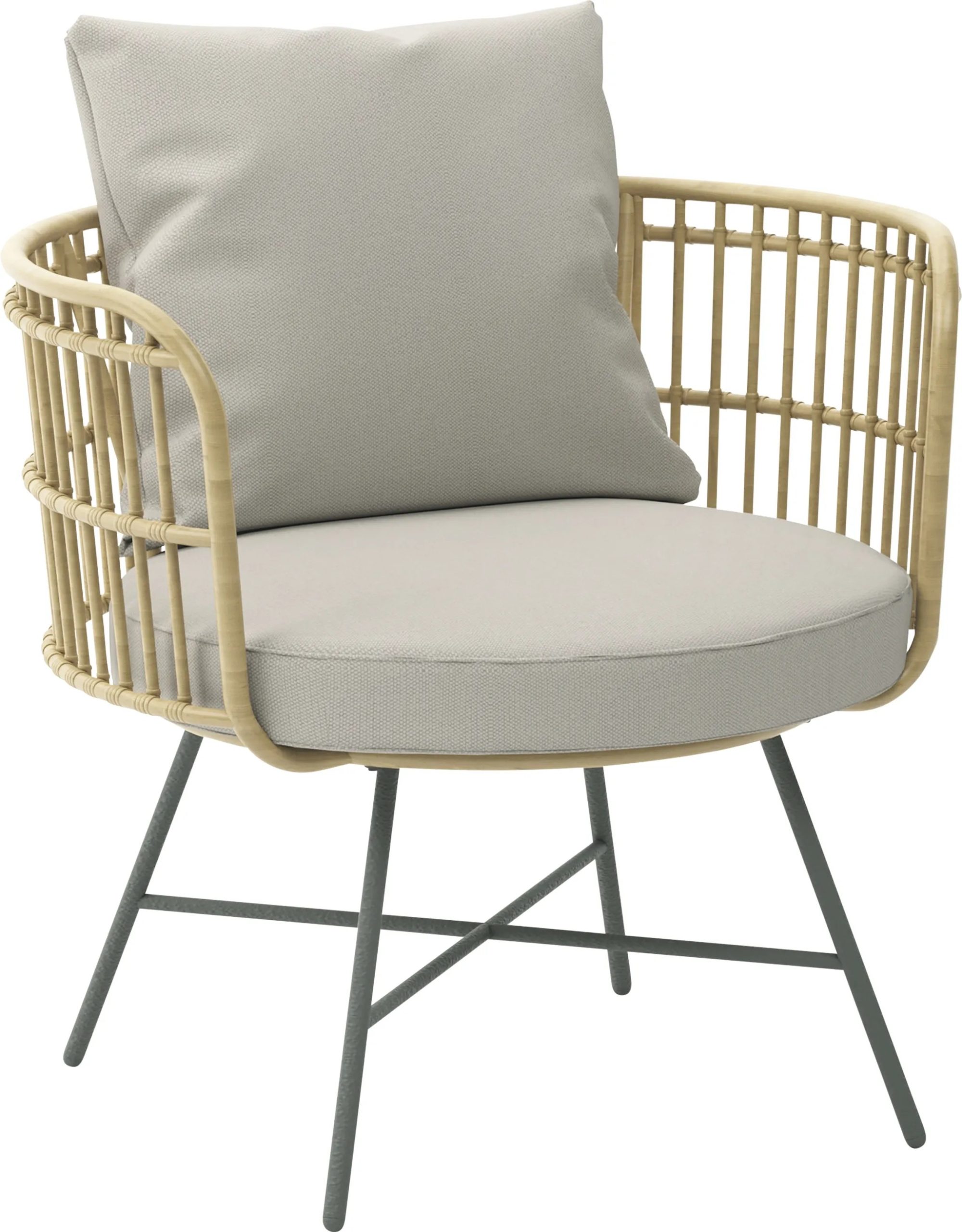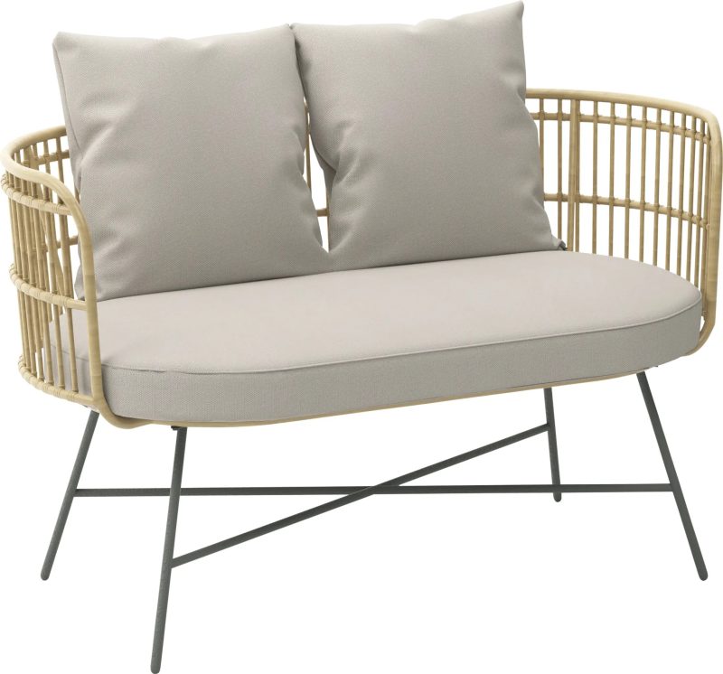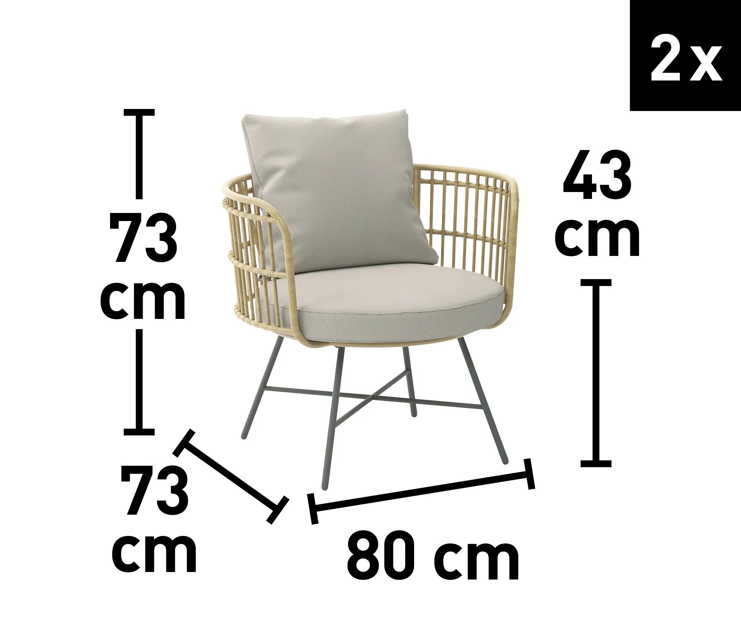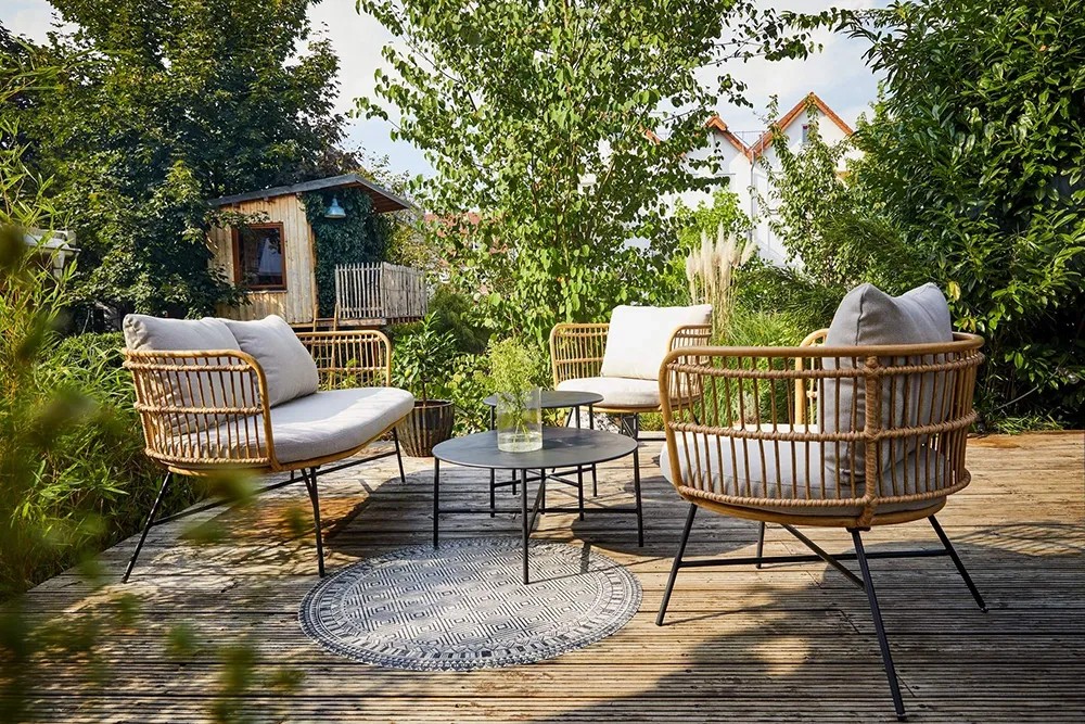 Elementy z technorattanu nadają meblom lekkości i nawiązują wyglądem do naturalnych tworzyw. Dopasowane w spokojnym beżowym kolorze, dodają wrażenia przytulności. Zestaw jest stylowym elementem, który można łatwo dopasować do wielu przestrzeni.