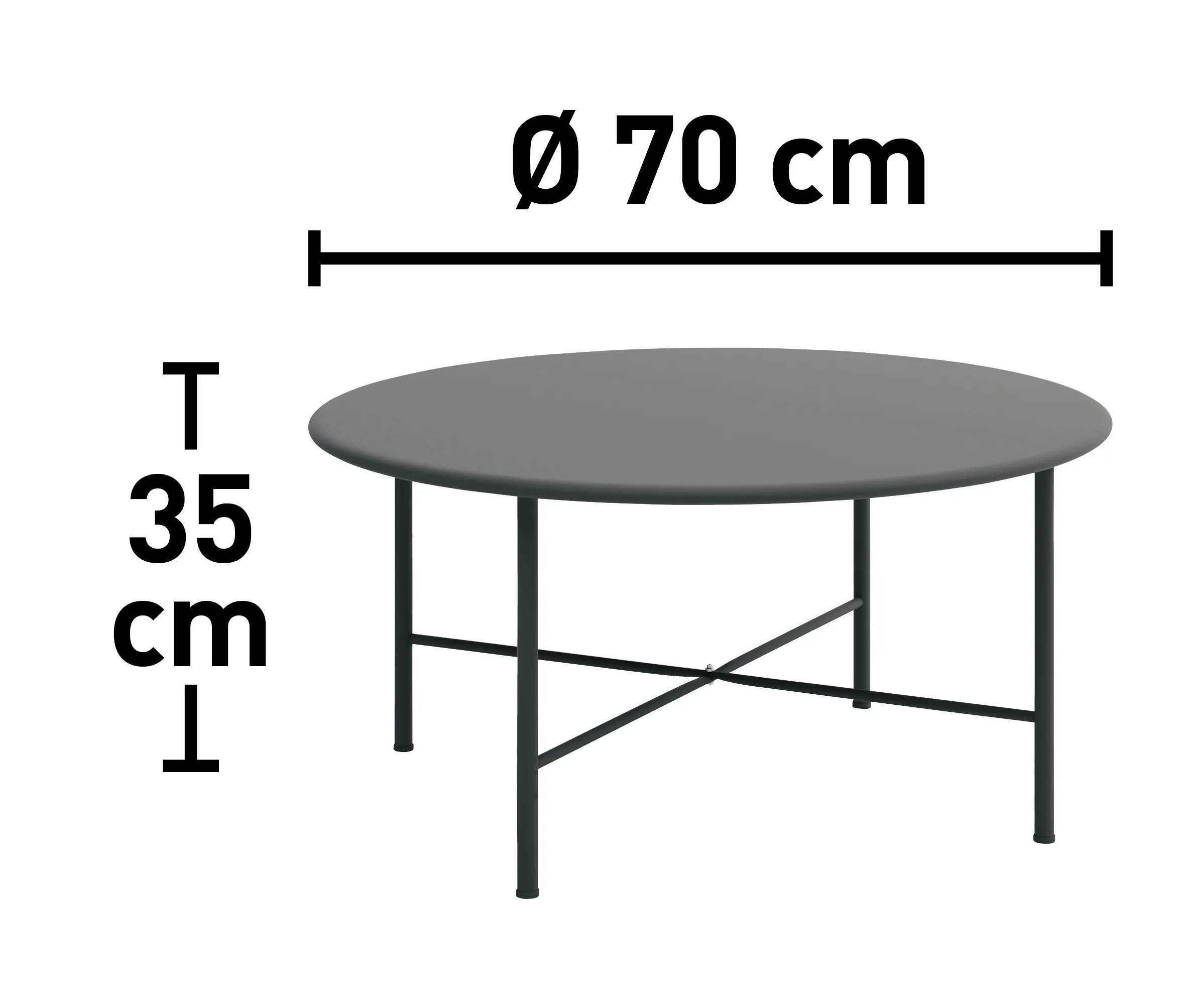 Stoliki oraz ramy mebli zostały wykonane z wyjątkowo wytrzymałej stali, zapewniającej stabilność. Materiał ten został połączony z technorattanem, który charakteryzuje się dużo wytrzymałością, odpornością na działanie warunków atmosferycznych i łatwością w pielęgnacji. Pokrowce poduch wykonane zostały z tkaniny poliestrowej, która jest szybkoschnąca, łatwa do czyszczenia i odporna.