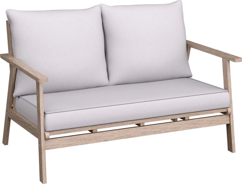 Połączenie naturalnego drewna z eleganckimi szarymi poduszkami tworzy stylowy design, który doskonale sprawdzi się w ogrodach i na tarasach. Naturalne akcenty wprowadzą harmonię i ciepło do Twojej przestrzeni zewnętrznej.