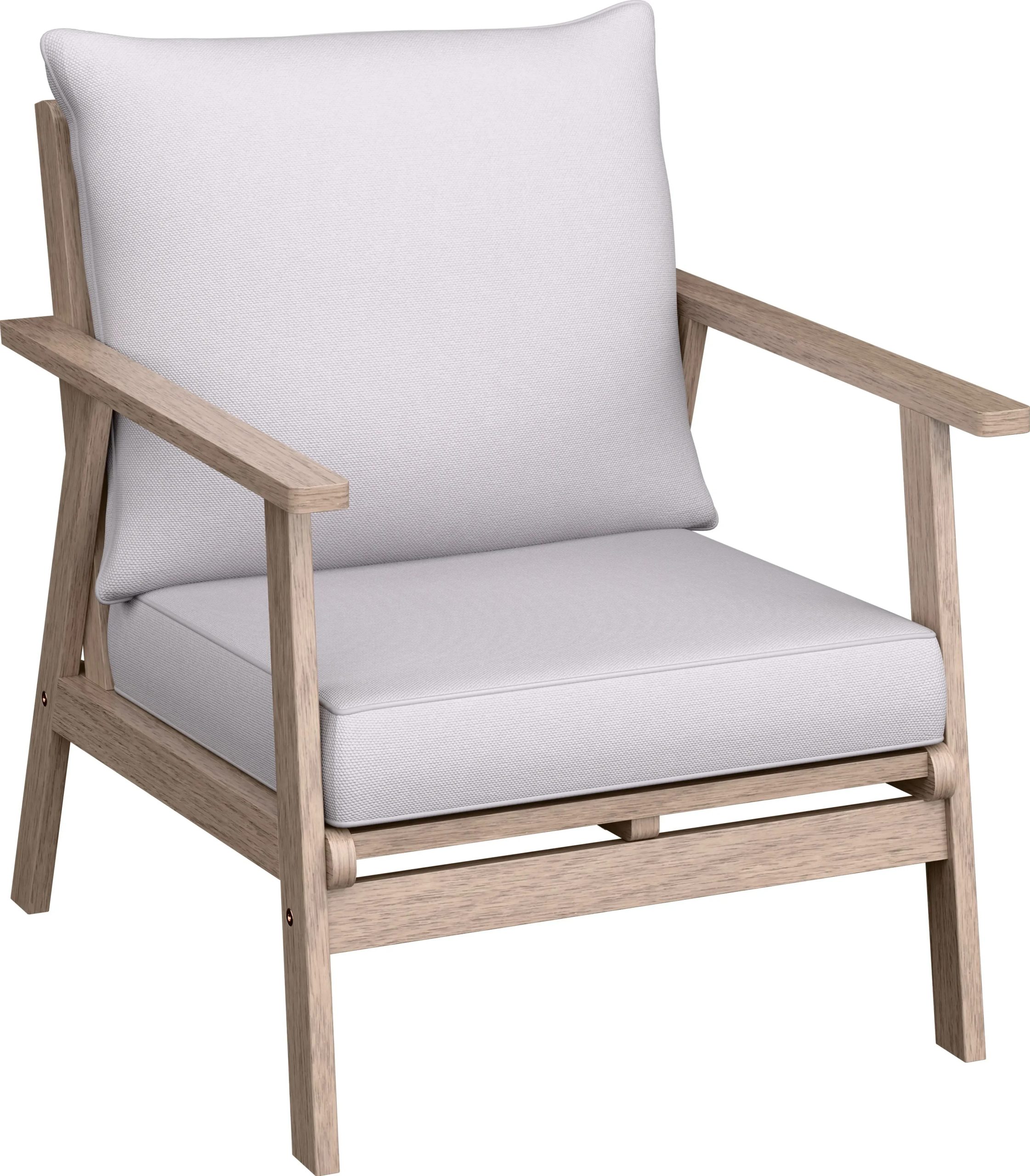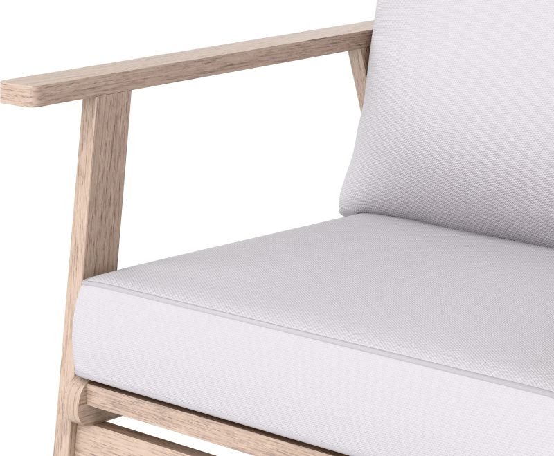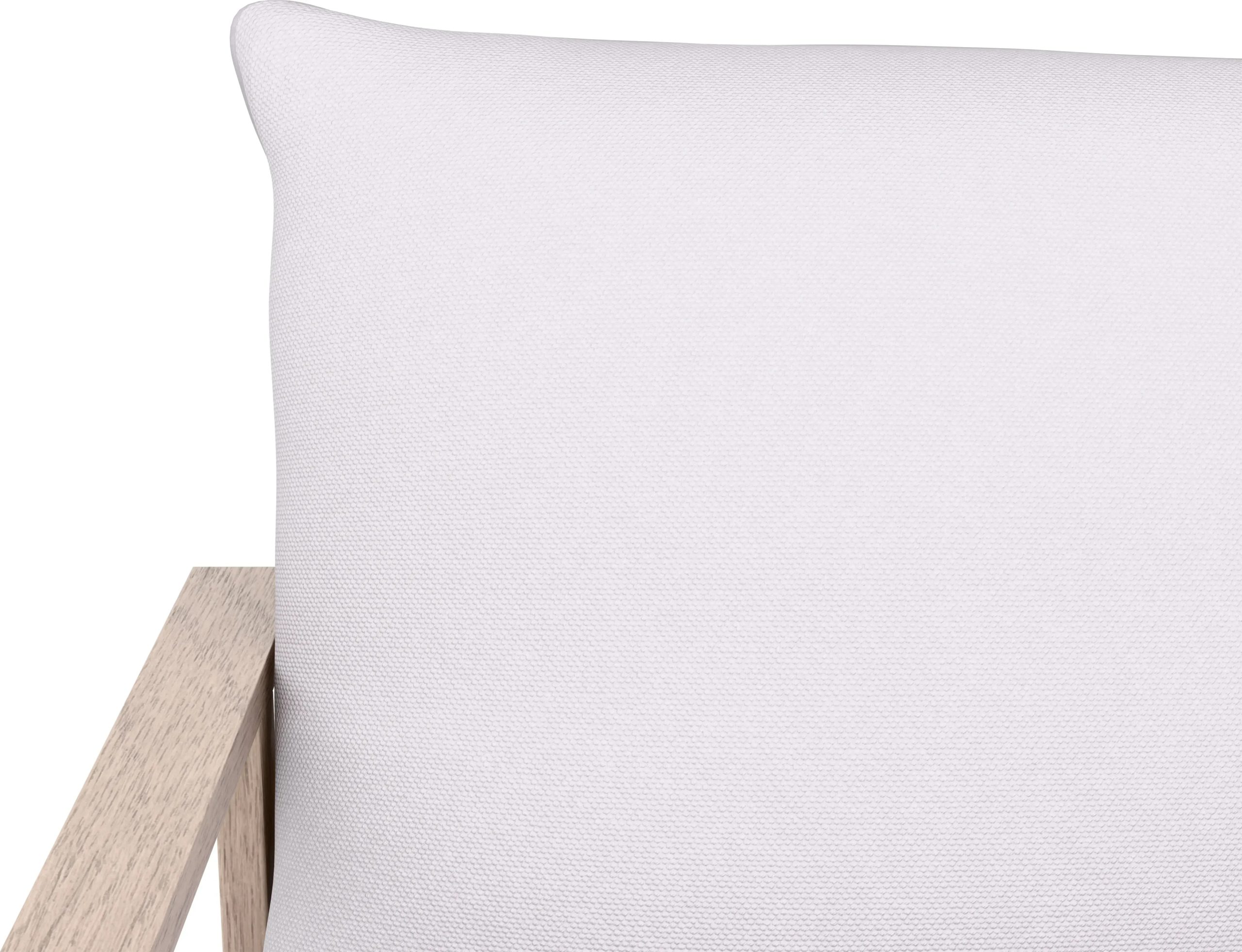 Grube poduszki na siedziska i oparcia wykonano z wytrzymałego poliestru o gramaturze 180 g/m2. Ich szary kolor stanowi harmonijne połączenie z naturalnym odcienia drewna, nadając całości uniwersalnego i stylowego charakteru. Poduszki są łatwe w czyszczeniu i zapewniają wygodę podczas długiego odpoczynku.