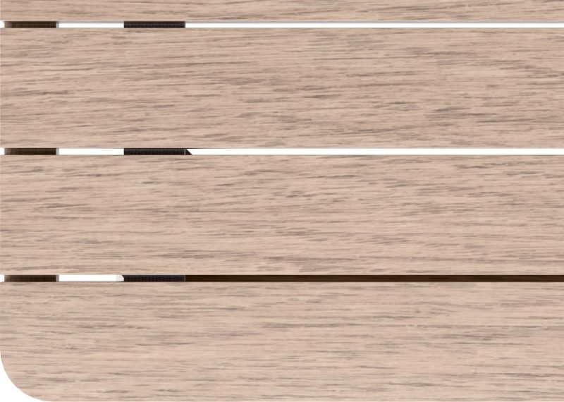 Stelaż mebli został wykonany w 100% z naturalnego drewna akacjowego z certyfikatem FSC (Forest Stewardship Council), zaświadczającym, że surowiec został pozyskany ze zrównoważonej gospodarki leśnej. Drewno to jest twarde i wyjątkowo odporne za zarysowania.