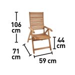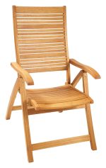 Składany (pozycyjny) fotel z serii Chelsea zapewnia doskonały komfort siedzenia. Drewniane krzesło idealnie sprawdzi się jako wygodne siedzisko na balkonie, tarasie czy w ogrodzie.