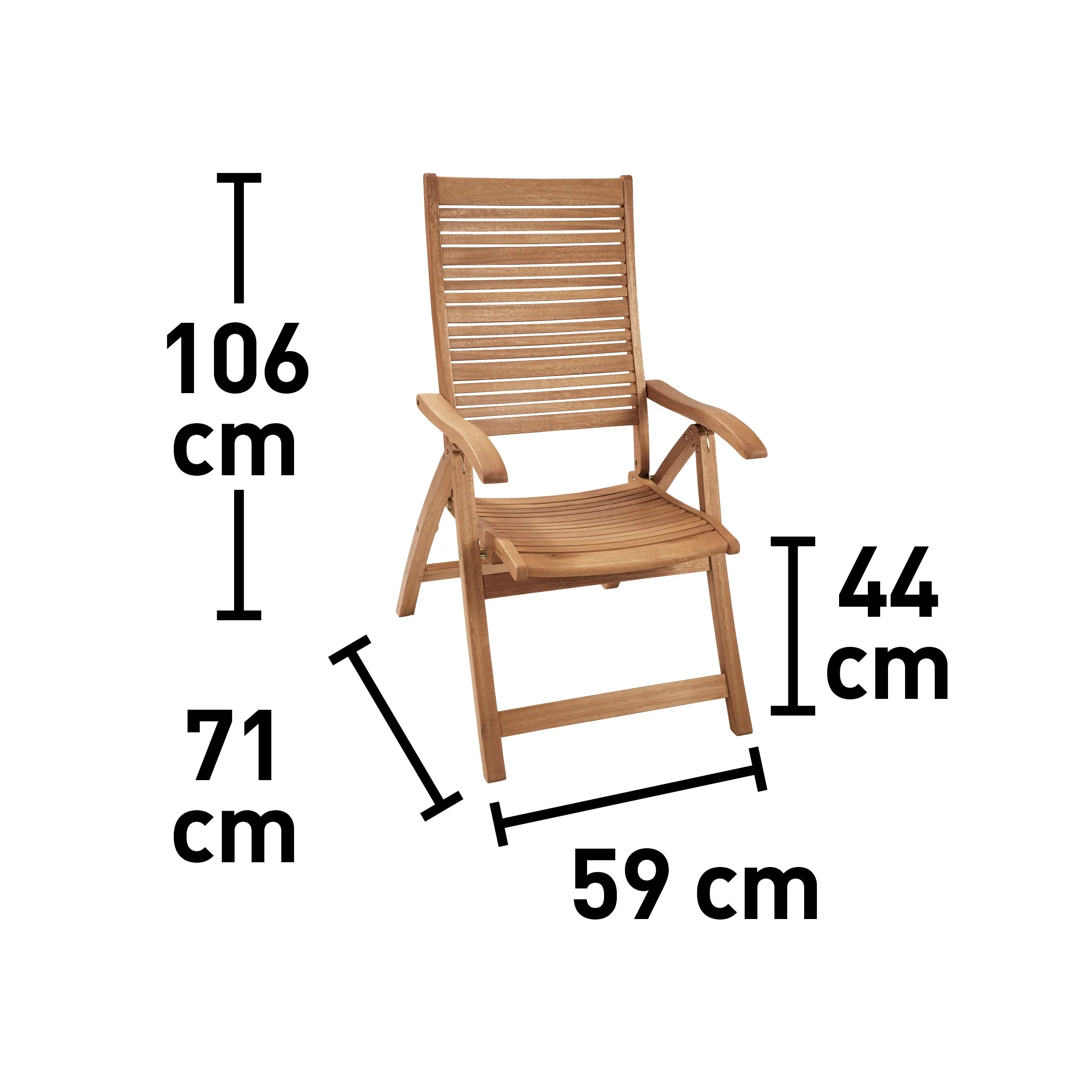 Fotel ogrodowy jest wykonany z drewna eukaliptusowego z certyfikatem FSC, które, jak udowodniono, pochodzi ze zrównoważonej gospodarki leśnej. Powierzchnie są olejowane. Dzięki zastosowanemu materiałowi fotel ogrodowy jest trwały i odporny na warunki atmosferyczne, dzięki czemu idealnie nadaje się do użytku na zewnątrz. Krzesło ogrodowe jest wyjątkowo lekkie i można je łatwo ustawić w dowolnym miejscu. Montaż jest szybki i łatwy.