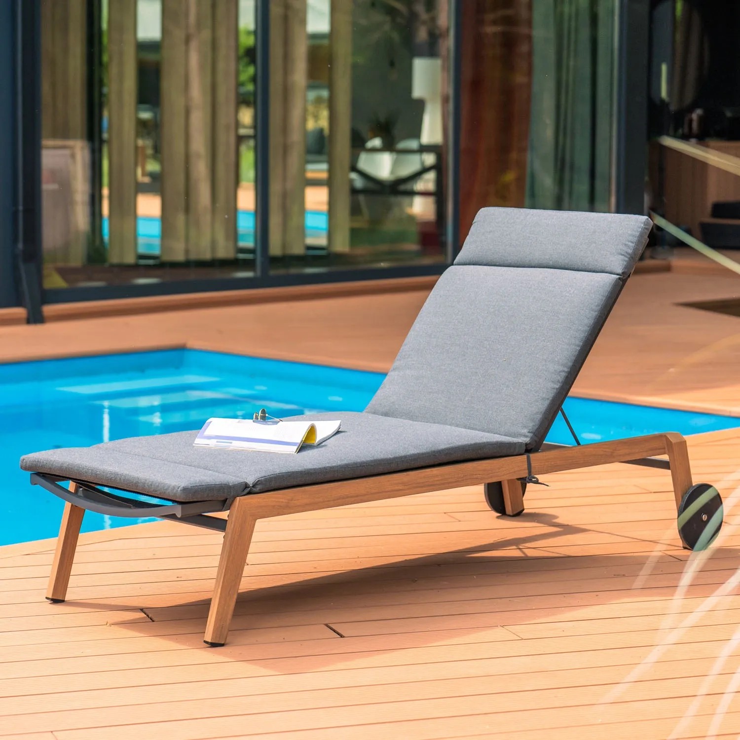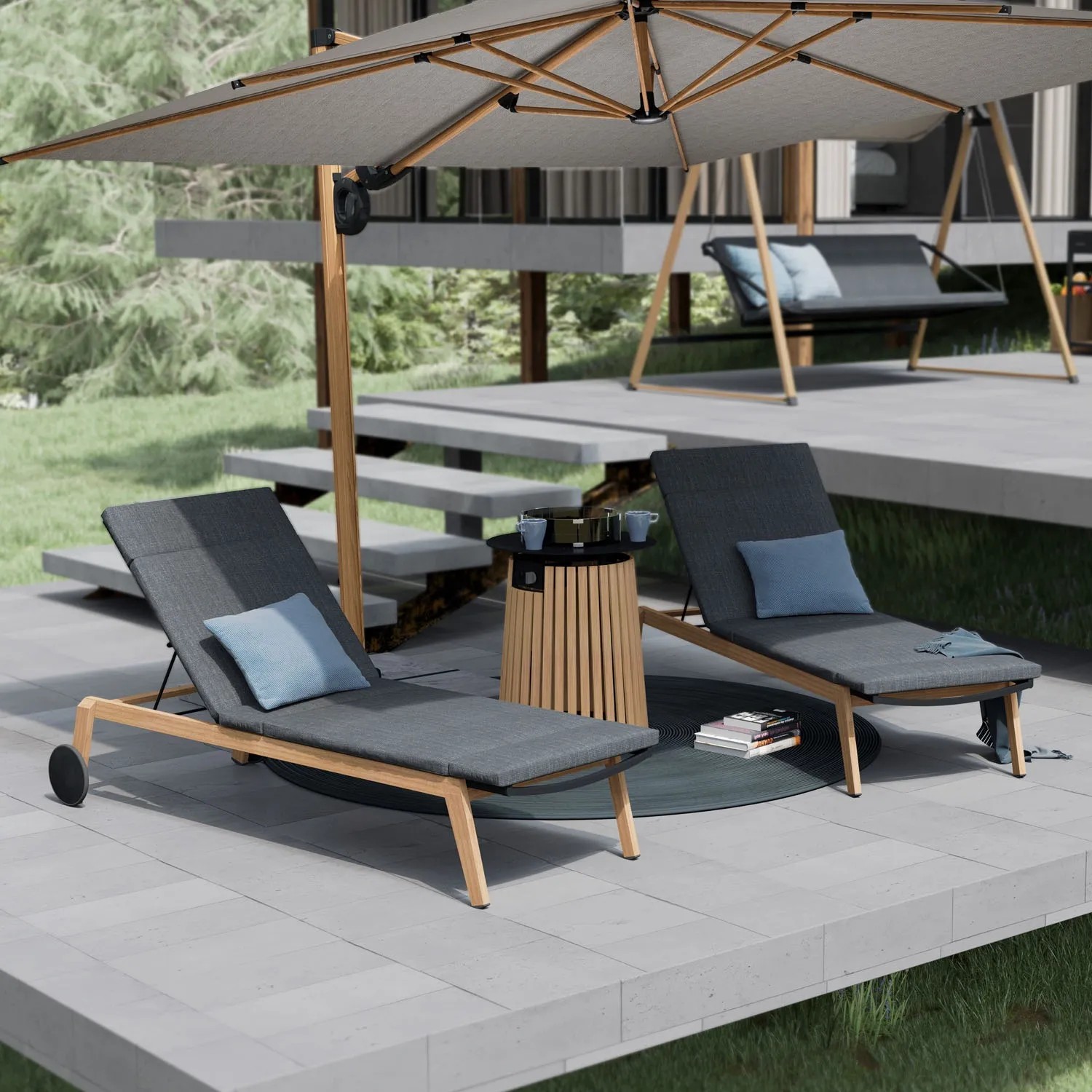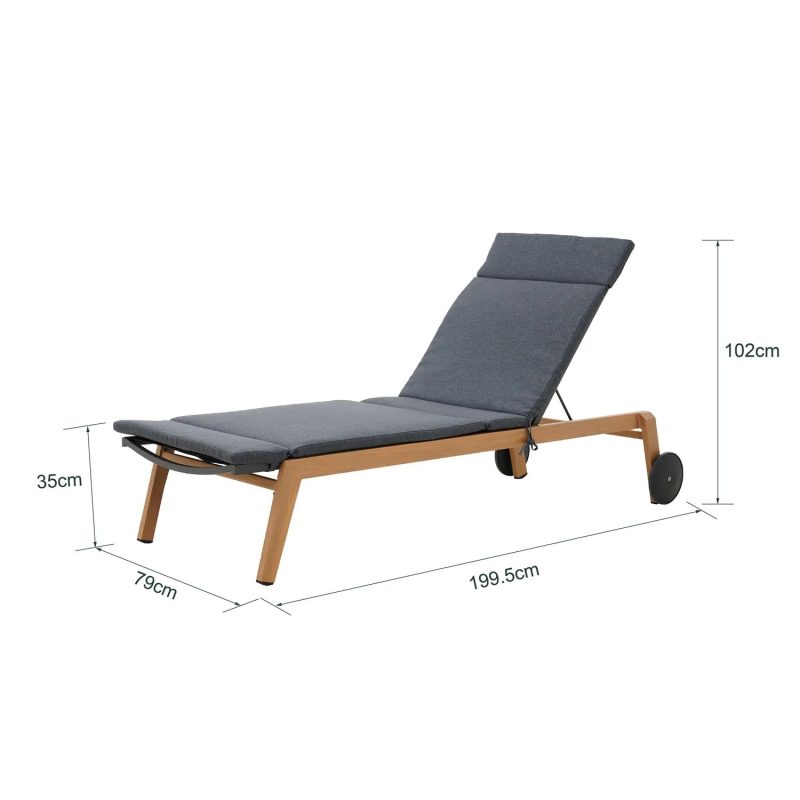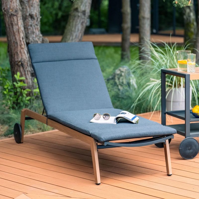 Aluminiowa rama zapewnia trwałość i odporność na korozję, co czyni mebel doskonałym wyborem na wiele sezonów. Duże kółka i ergonomiczny uchwyt ułatwiają przemieszczanie leżaka, pozwalając na ustawienie go w dowolnym miejscu w ogrodzie lub na tarasie.