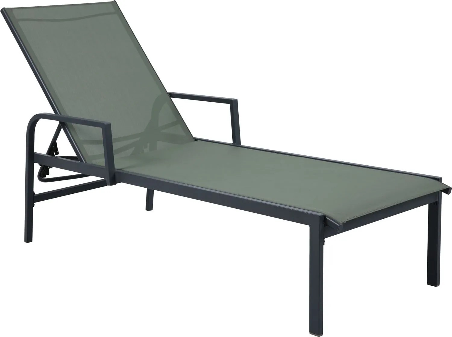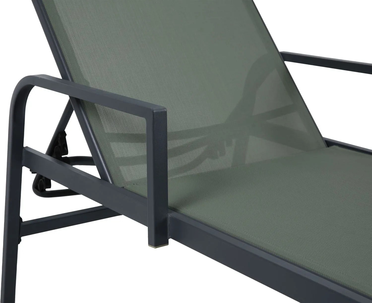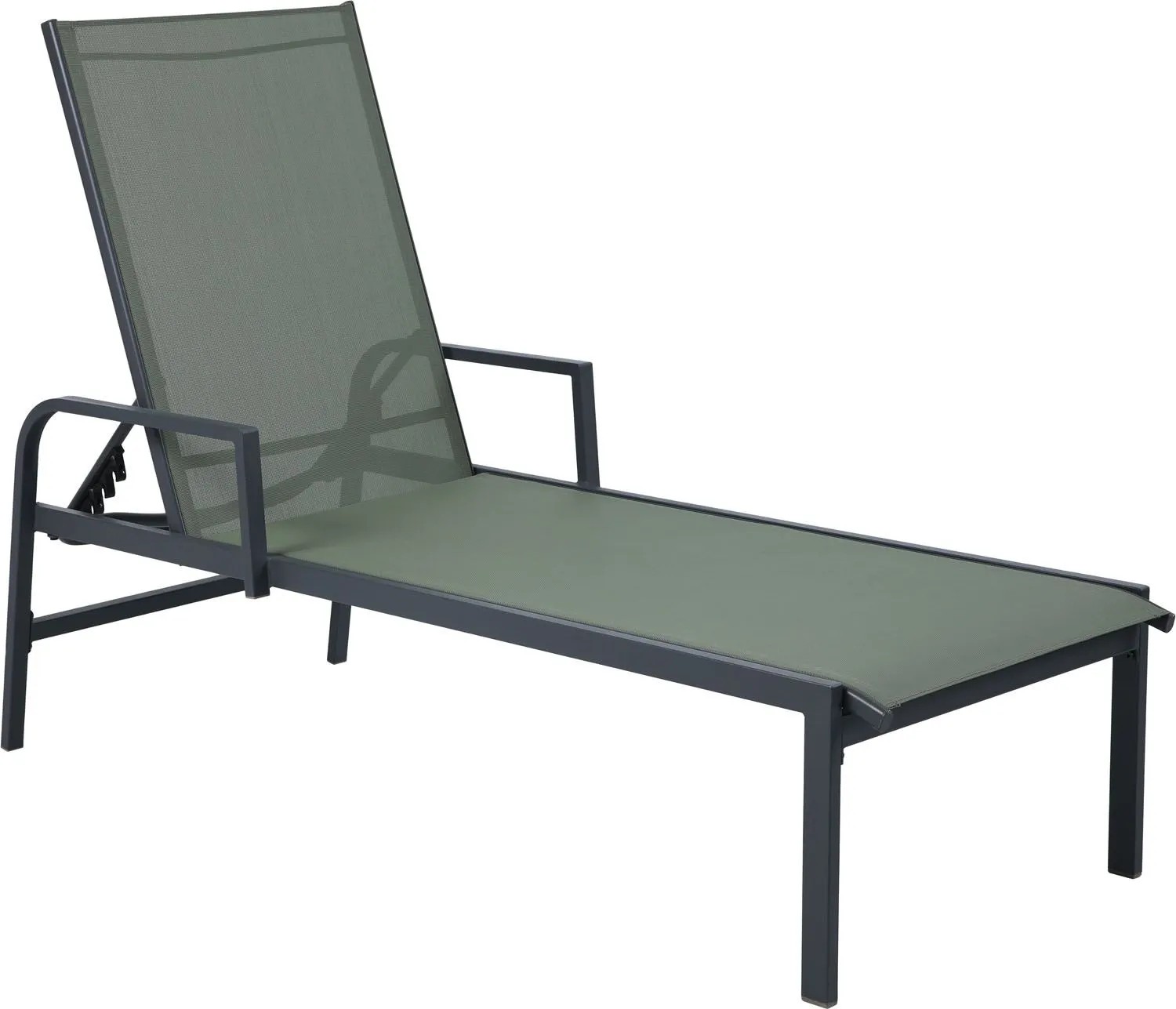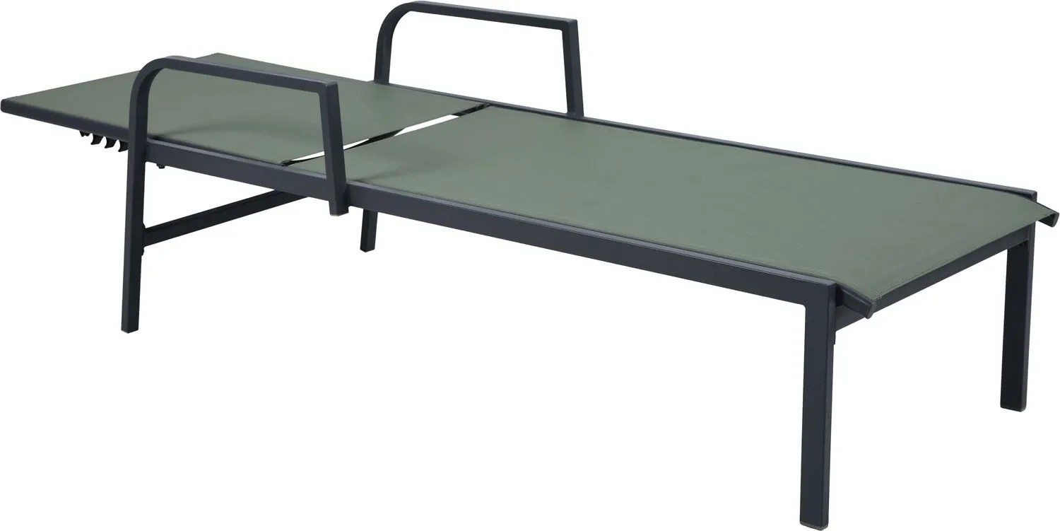 Nowoczesna forma oraz stonowana kolorystyka w odcieniu ciemnej zieleni sprawiają, że leżak harmonijnie komponuje się z aranżacją ogrodu, patio lub tarasu.