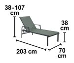 Konstrukcja leżaka oparta jest na solidnej stalowej ramie malowanej na kolor antracytowy, która zapewnia trwałość oraz maksymalne obciążenie do 110 kg. Siedzisko i oparcie wykonane są z dopasowanej tkaniny tekstylnej będącej połączeniem polichlorku winylu i poliestru, odpornej na warunki atmosferyczne. Zastosowane materiały są łatwe w pielęgnacji i przystosowane do użytkowania zewnętrznego.