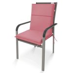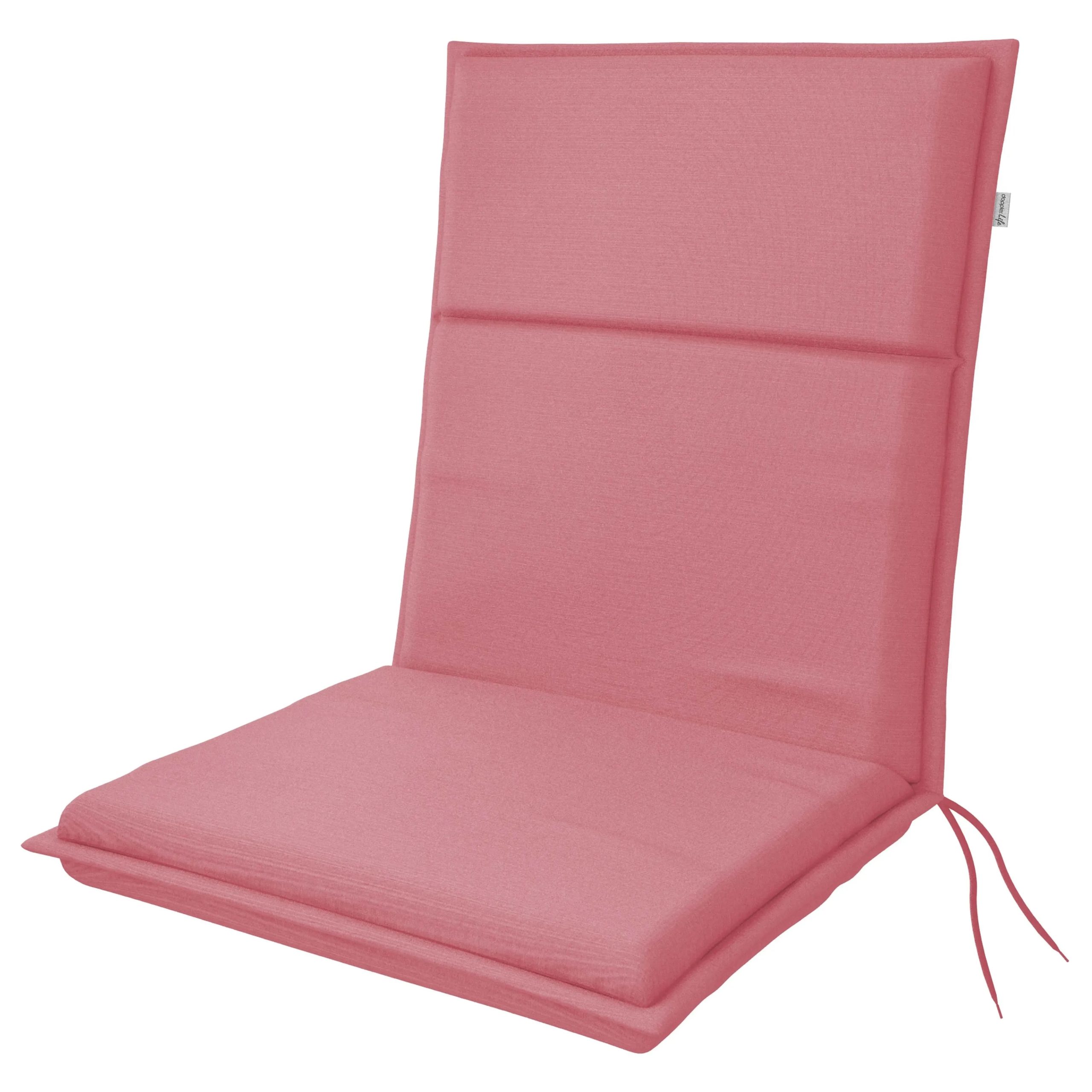 Poduszka na krzesło LIFE 5354 różowa wypełniona pianką poliestrową, pokrycie z poliestru 170 g/m2. Zapięcie na przesuwany klips umożliwia łatwe dopasowanie poduszki do rodzaju krzesła, a wiązania w zagięciu poduszki zapewniają stabilne mocowanie do siedziska.