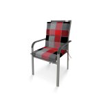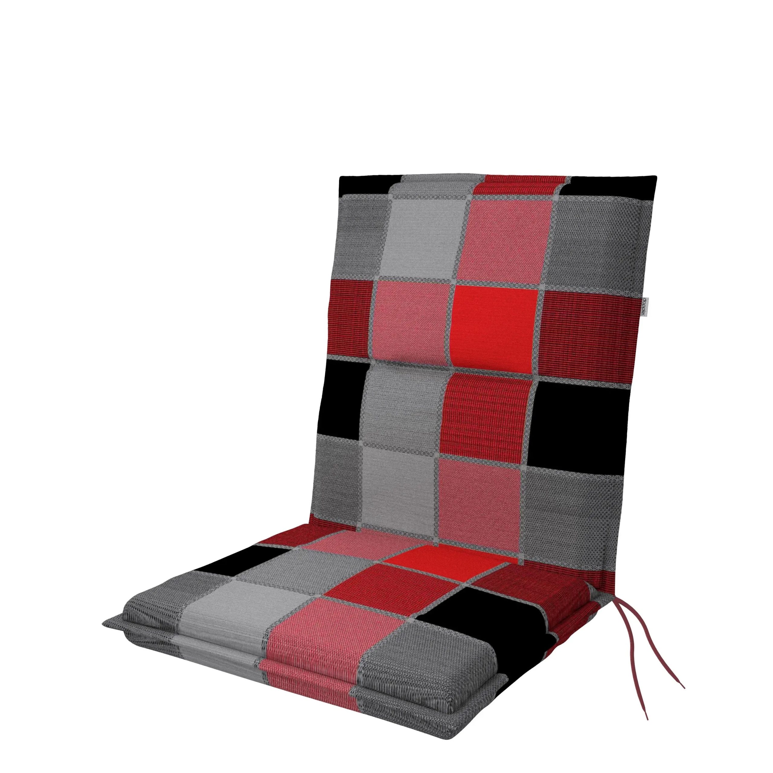 Poduszka na krzesło SPOT 6118 czerwono-czarna krata z obszytą krawędzią, zszyta 1x w oparciu. Dzięki mocowaniu za pomocą klamry można dostosować poduszkę do rozmiaru i typu krzesła. Poduszka siedziska jest mocowana za pomocą dwóch sznurowadeł w zagięciu poduszki. Pokrycie poduszki jest niezdejmowalne.