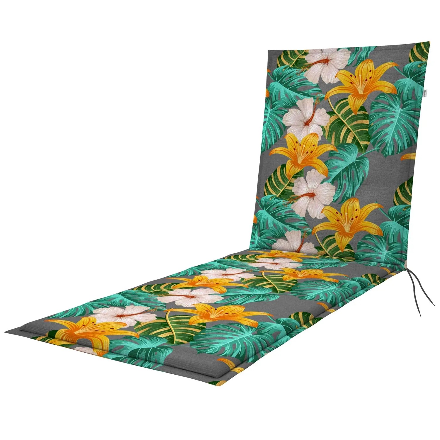 Poduszka na leżankę LIVING 5701 kwiaty wypełniona pianką poliestrową, pokrycie z poliestru 118 g/m2. Zapięcie na przesuwany klips umożliwia łatwe dopasowanie poduszki do rodzaju krzesła, a wiązania w zagięciu poduszki zapewniają stabilne mocowanie do siedziska.