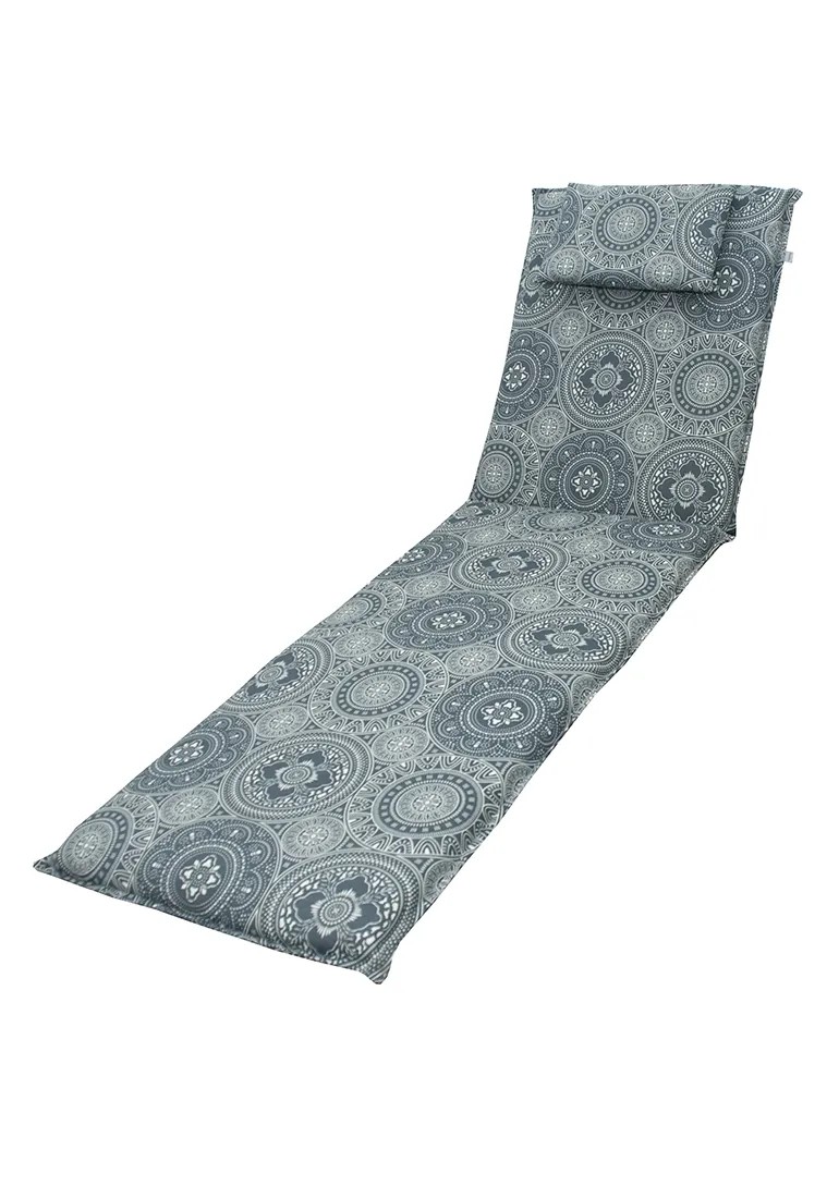Poduszka na leżankę niską, rozmiar ok: 200 x 60 x 7 cm. Poducha z rantem, wypełnienie to pianka z fliseliną. Zamocowano gumową tylną tasiemkę oraz sznurki do zawiązania. Wykonana z wełny z domieszką.