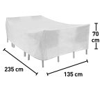 Pokrowiec to uniwersalna osłona, którą należy dopasować do wymiarów posiadanych mebli ogrodowych. Posiada sznurek ułatwiający zamocowanie. Pokrowiec powinien szczelnie okrywać produkty z każdej strony, zostawiając jednocześnie przestrzeń umożliwiającą cyrkulację powietrza.